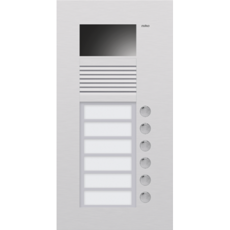 Marque: NikoRéférence CME: N10306EAN: 5413736162785Description: Poste extérieur à encastrer avec 6 sonnettes et caméra couleurs