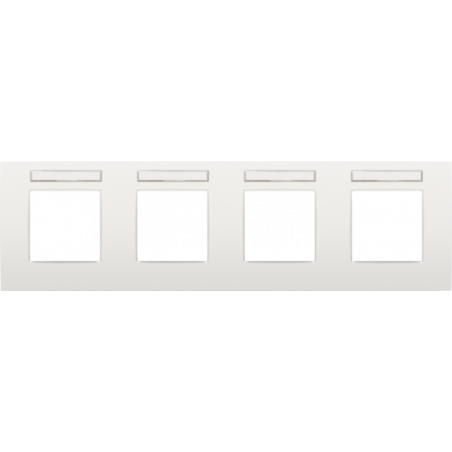 Marque: NikoRéférence CME: N12076402EAN: 5413736336568Description: Plaque de recouvrement quadruple, entraxe de 71 mm et un porte-étiquette transparent, couleur Niko Intense white