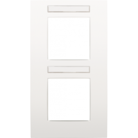 Marque: NikoRéférence CME: N12076801EAN: 5413736336513Description: Plaque de recouvrement double avec un entraxe de 71 mm et un porte-étiquette transparent, couleur Niko Intense white