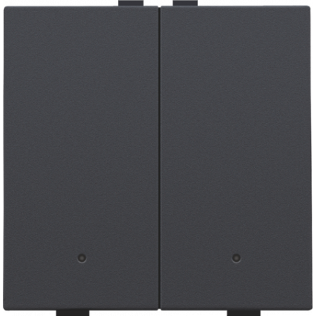 Marque: NikoRéférence CME: N12252202EAN: 5413736396920Description: Bouton-poussoir double avec LED et capteurs de confort pour Niko Home Control, couleur anthracite coated