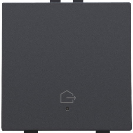 Marque: NikoRéférence CME: N12252921EAN: 5413736397507Description: Bouton-poussoir simple avec LED et capteurs de confort pour Niko Home Control, symbole « quitter la maison », couleur anthracite coated