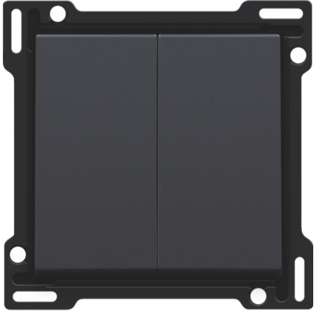 Description: Set de finition pour interrupteur double allumage, interrupteur va-et-vient + bouton-poussoir N.O., interrupteur va-et-vient double ou bouton-poussoir double N.O. ou N.F., couleur anthracite coated
