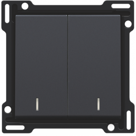 Description: Set de finition avec double voyant pour interrupteur double allumage, interrupteur va-et-vient + bouton-poussoir N.O., interrupteur va-et-vient double ou bouton-poussoir double N.O. ou N.F., couleur anthracite coated