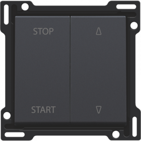 Marque: NikoRéférence CME: N12265905EAN: 5413736179165Description: Set de finition pour interrupteur pour volets à verrouillage électrique, couleur anthracite coated