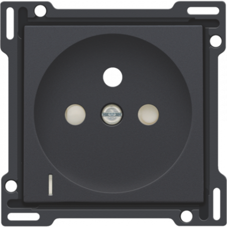 Description: Set de finition avec voyant transparent pour prise de courant avec indication de tension, broche de terre et obturateurs de protection, profondeur d'encastrement de 28,5 mm, couleur anthracite coated